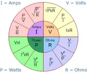 Here’s a pie chart to demonstrate exactly how the electrical elements voltage, wattage, power and resistance relate to one another.