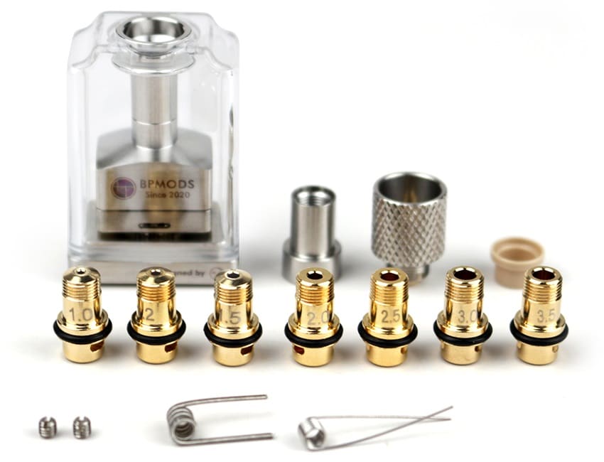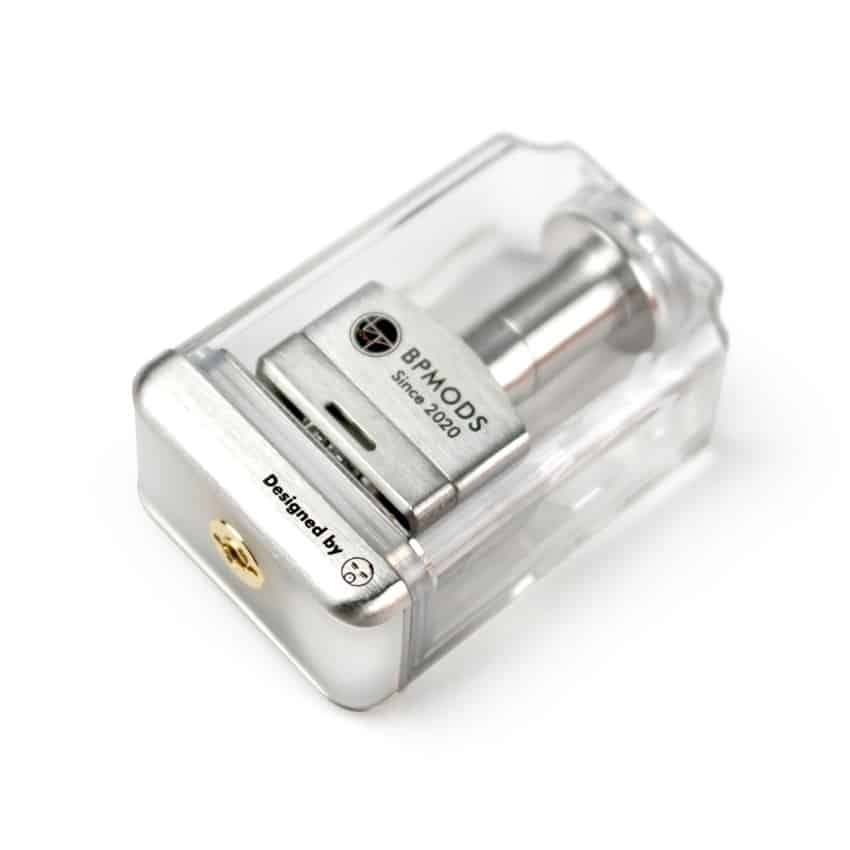 The Pioneer Insider is designed for a Mouth To Lung to Restricted Direct Lung vaping experience. In order to be able to refine its draw BP Mods have chosen airflow pins to be placed directly in the center of the deck. A total of 7 configurations are available ranging from 1mm opening to 3.5mm. In addition, the Pioneer Insider comes with a silicone seal fitted with an absorbent cotton pad to be placed under the tank in order to absorb any traces of condensation under the atomiser.