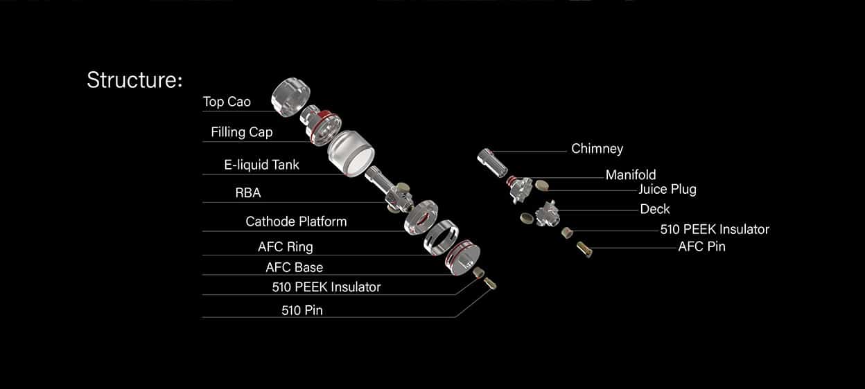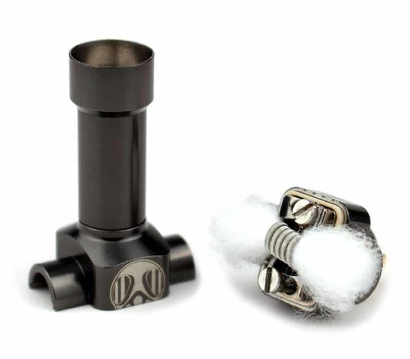 Thanks to its high-quality stainless steel body, which does so elegantly and with plenty of room left over for a single coil. A dual-slotted bottom airflow control ring at the base and interchangeable air pins allow for customisation and are connected via a 510 thread. It is one of the best tanks for both MTL and RDL vaping and works perfectly with 0.8ohm and 0.5ohm coil resistance.