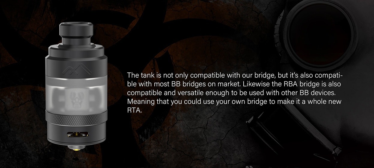 Dovpo X Across Hazard RTA is another beauty of a release after the success of the Samdwich RDA. The design concept of the Hazard RTA is derived from Bio Hazard gas masks with the bridge design looking similar to side filters. Along with the cool appearance, you’ll find this latest RTA playful and will be amazed by its adaptability. As an RTA tank, the Hazard produces great flavours & can be utilised in two ways.