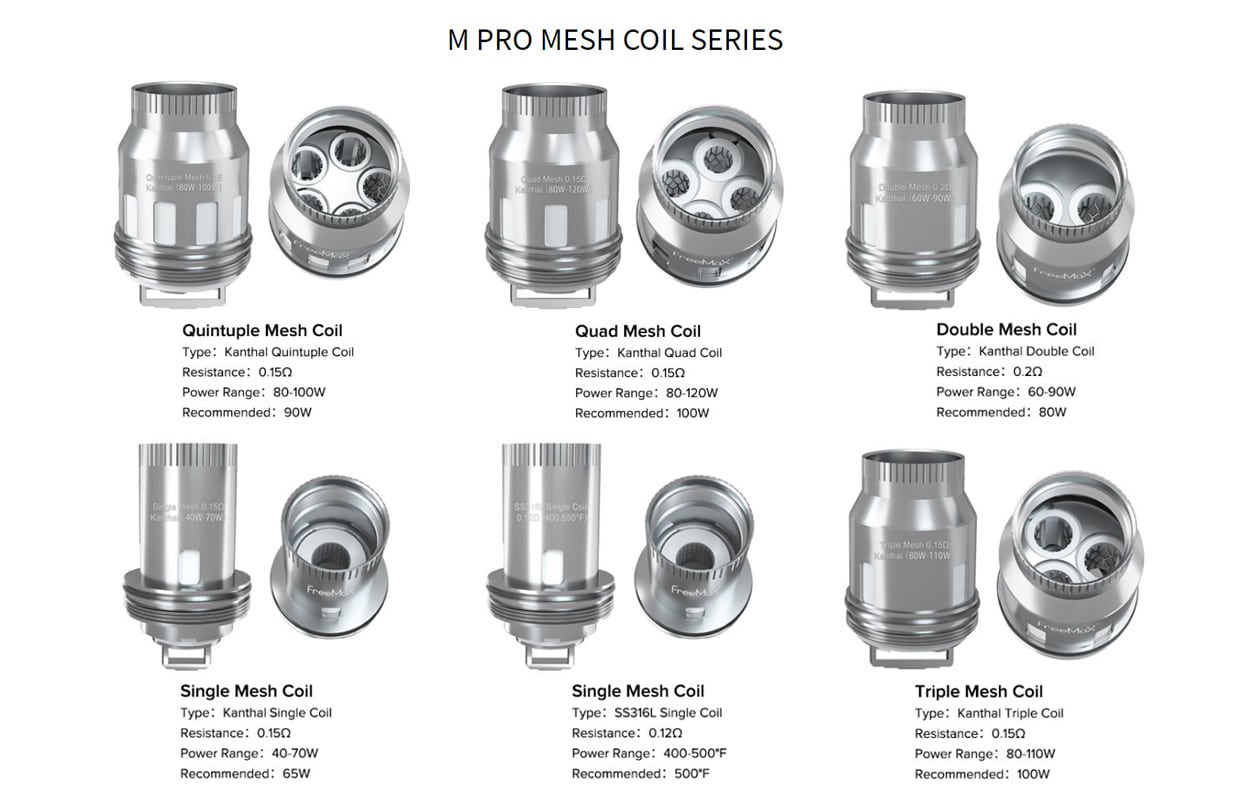 Coil Type | Kanthal Double Mesh, Kanthal Quad Mesh, Kanthal Single Mesh, Kanthal Triple Mesh, SS316 Single Mesh |