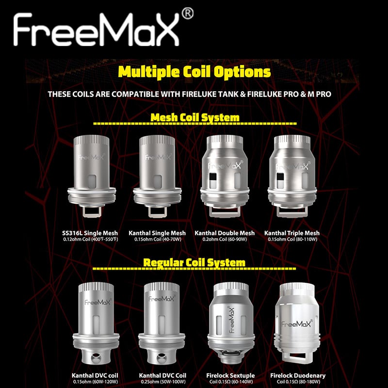 These coils are compatible with Fireluke Tank, M Pro Tank, M Pro 3 Tank and Fireluke Pro Tank. If you are looking for the newly released Quintuple Coils then please click here! The Regular Coil System Coils are also available from your one stop vaping store LOV!