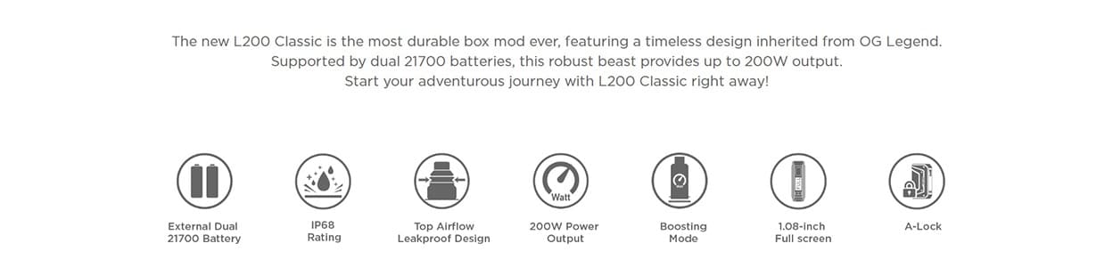 The Geekvape L200 Classic Kit is a timeless design inherited from OG Legend alongside the L200.