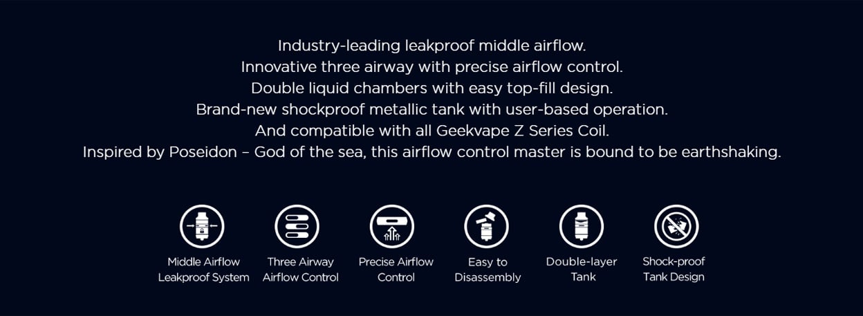 GeekVape P Sub Ohm Tank is the latest addition to the sub ohm tank collection from GeekVape. So what does the P actually stand for and what makes this tank different? The P subsequently is for Poseiton! An advanced innovation based on the original Zeus Tank that we all love due its flavour boosting capabilities. This tank is certainly something different from what has been released before hence we have decided to stock it and be one of the first in the UK again!