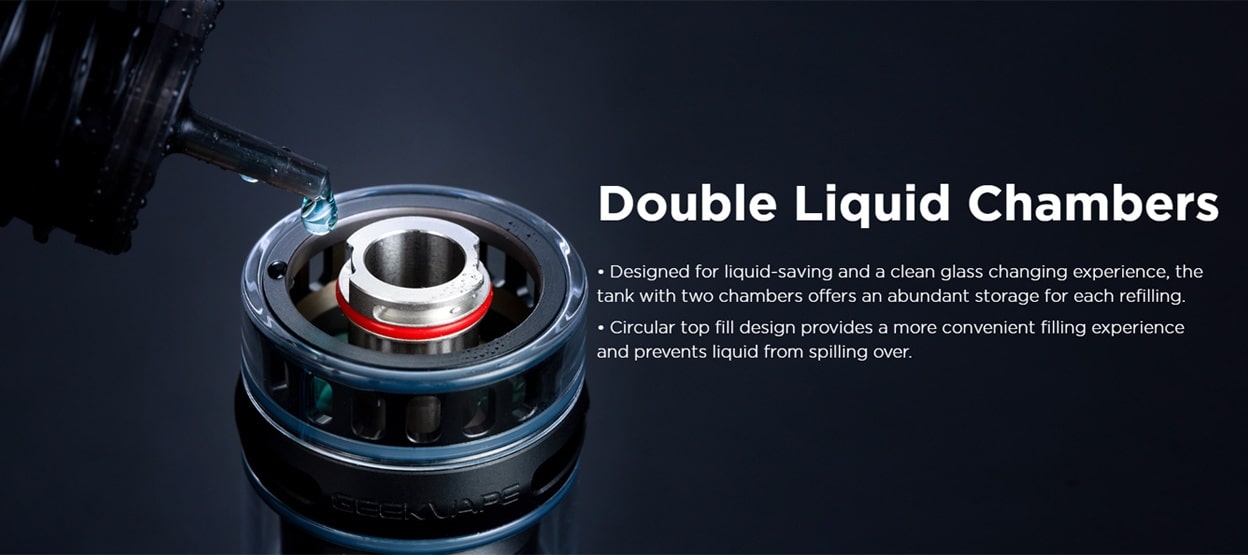 The GeekVape P tank also has a dual layer liquid chamber with a shock proof glass tube and is compatible with the Z Series Coils. These are not compatible with the Z 0.25 variation. To add this is an easy top refill tank.