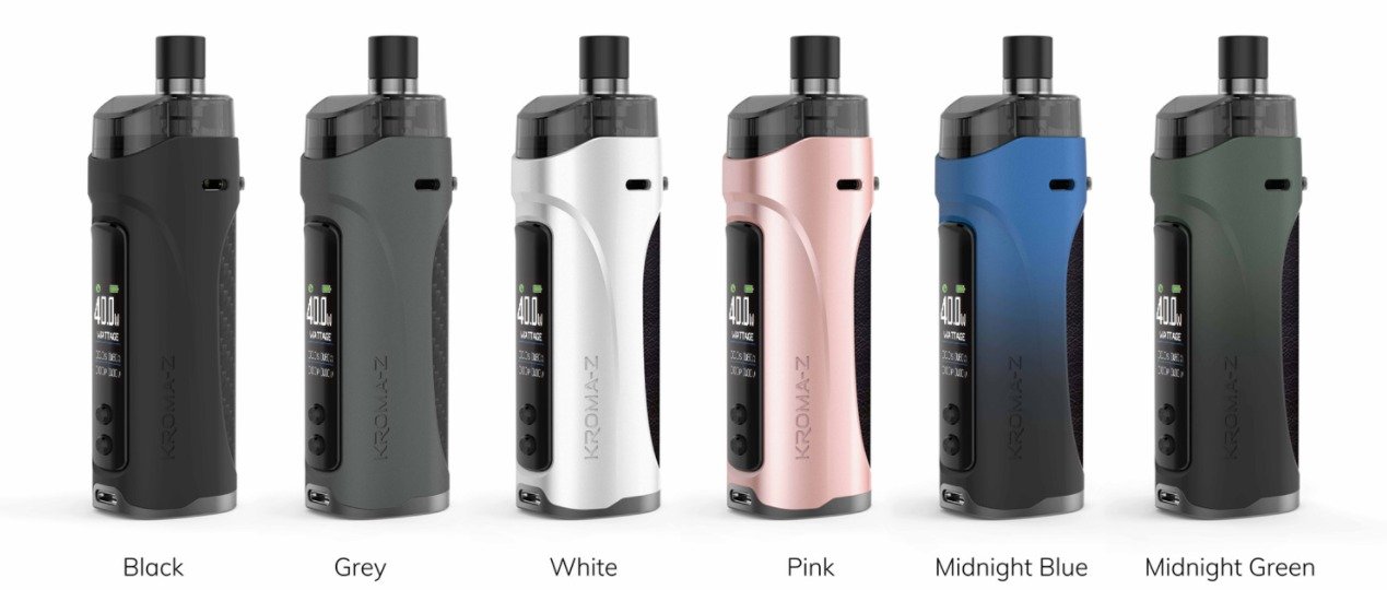 The new Kroma-Z Pod Mod is fully compatible with the entire Z-Coil line, making it desirable for vapers who have come to love the Zenith, Zenith Pro, and Zlide tanks. Z-coils are widely available, and you can be assured they will continue to be available for many years to come. The Kroma-Z Pod Mod borrows it’s sleek styling from the Innokin Kroma-R including the side firing bar. Just pick it up and squeeze it for a fully satisfying vape! Fill the pod with 4.5ml of e-liquid (2ml TPD version also available) without removing the pod from the device! Easily adjust the airflow from a tight MTL draw to a loose RDL draw with the side external airflow control! With 3000mAh built-in battery, it can output at power 6-40W. Remove the pod and pop on the 510 adapter (sold separately) and the pod becomes a mod! This doubles the usefulness and value of the device! You can then use your favourite Z-Coil tank like the Zenith, Zenith Pro, Zlide, or any other 510 compatible tank! Pick up your favourite colour today and enjoy a satisfying, flavourful, stylish vape with the all new Innokin Kroma-Z Pod Mod!