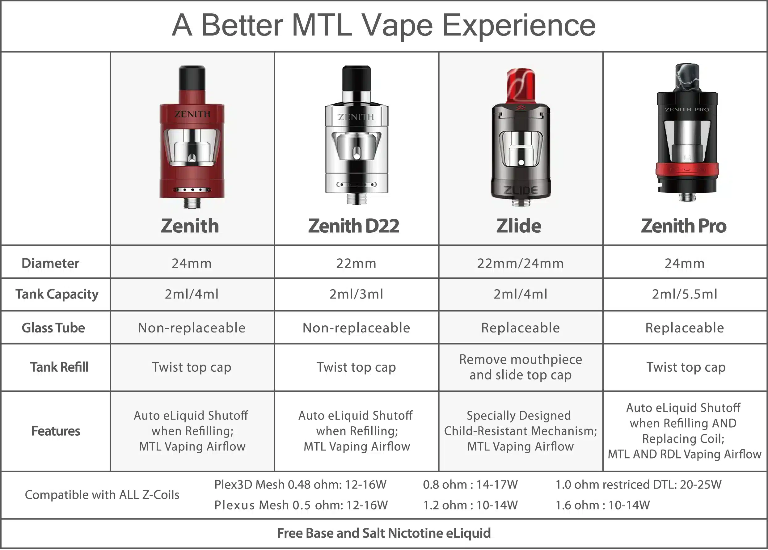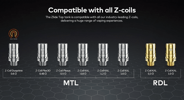 The 0.8 Ohm, 1.2 Ohm and 1.6 Ohm are classic MTL coils, they’ll produce a discreet amount of vapour and deliver a clear flavour. The 1.0 Ohm Z coils feature a specially designed mesh that increases flavour production and creates enough vapour for Restricted-DTL vaping. The 0.3 Ohm coils produce a larger amount of vapour for DTL vaping.