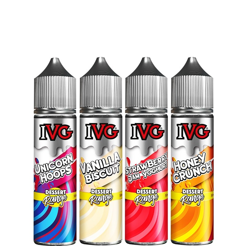 IVG Dessert Range Shortfill E-liquid is finally here after several requests from our members both new and old. The IVG gang are known for their brilliance in flavour and quality. Most likely one of the oldest firms in the UK to be producing hits after hits in their e-liquid ranges! We have four new flavours to bring to you in Honey Crunch, Strawberry Jam Yoghurt, Unicorn Hoops and Vanilla Biscuit. Yum, yum!