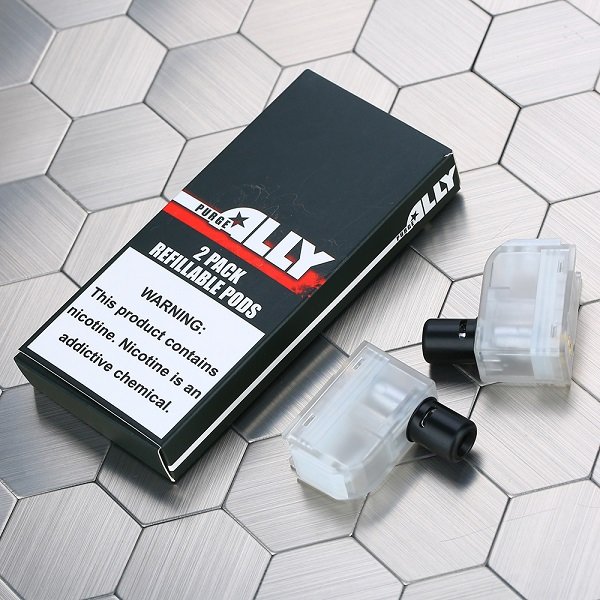 The purge ally pod is a 2ml refillable pod with easy filling design and 0.8ohm mesh coil which is compatible with both nicotine salt and freebase e-liquid, and also features an adjustable airflow ring cap which supports easy airflow adjustment and provides optimal airflow for both MTL vaping and DL vaping. Get it for your Purge Mods Ally Pod System and enjoy an excellent vaping