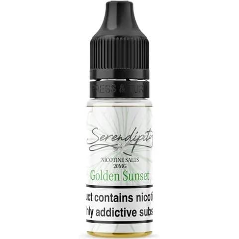 Golden Sunset nic salt e-liquid by Serendipity captures the flavour of classic apple pie. Rich and sweet notes of baked apple, golden pasty and sticky caramel are present in each puff.