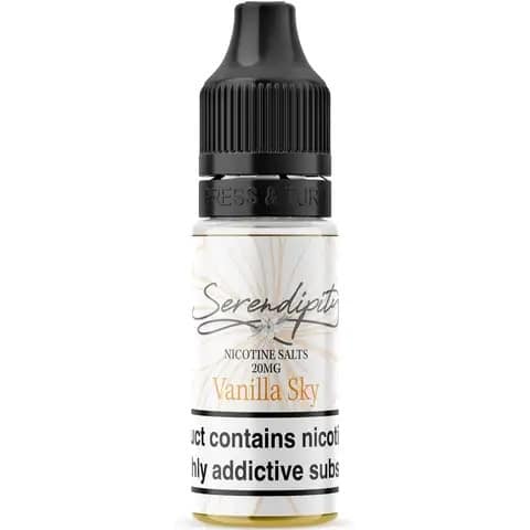 Vanilla Sky nic salt e-liquid by Serendipity delivers a sweet dessert vape by combining rich vanilla custard, sugary maple syrup and fluffy marshmallow flavours.