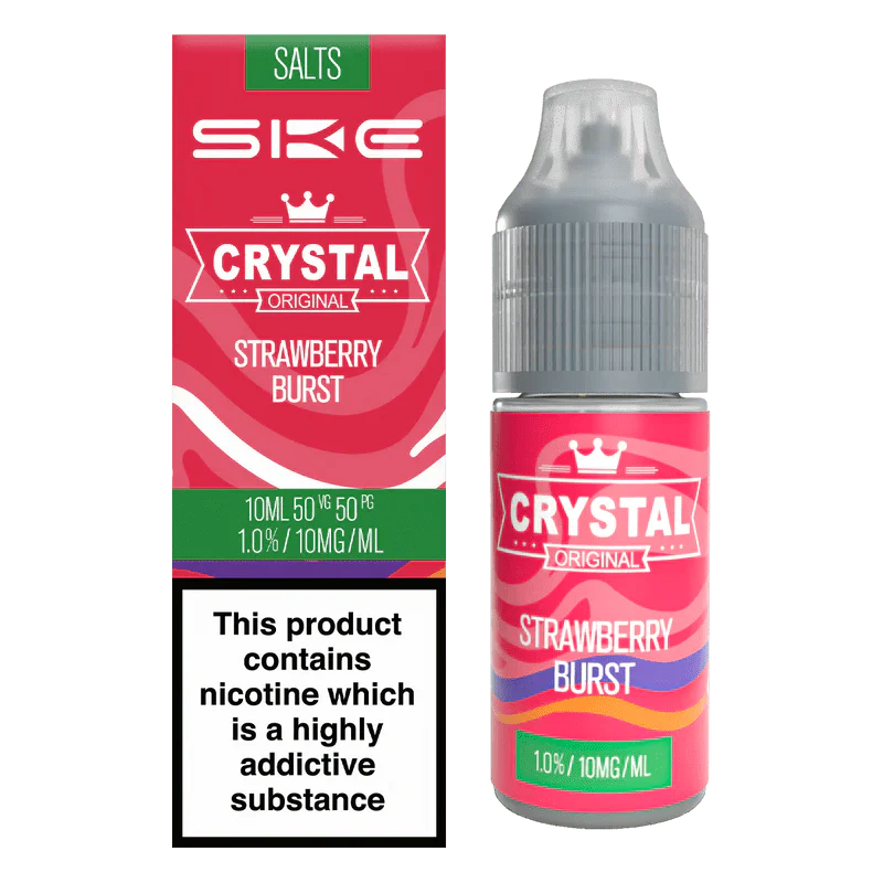 SKE Crystal Original Nic Salts 10ml are the refillable answer to the UK’s favourite disposable vape range—Crystal Bar. Designed by SKE, the original disposable giant, these nic salts deliver powerful flavour in a pod-friendly format with 10mg or 20mg nicotine strength, blended at a balanced 50VG/50PG ratio for smooth MTL vaping.