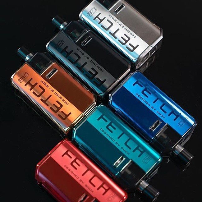 The SMOK Fetch Pro Kit integrates the function of pod device and MOD kit in a portable unit. Powered by an external 18650 battery, it fires up to a maximum output of 80W. The colorful 0.96-inch screen shows all vaping data precisely. Above the display, you will find an air inlet bar. The Pod also has air-adjustable at the bottom and high compatibility with RPM coils and RGC coils. You are capable of choosing different RPM Pod and RGC Pod as you like. The standard 510 drip tip at the top brings flavorful taste to the vapers too. The SMOK Pod features large side fire key for easy and fast firing speed.