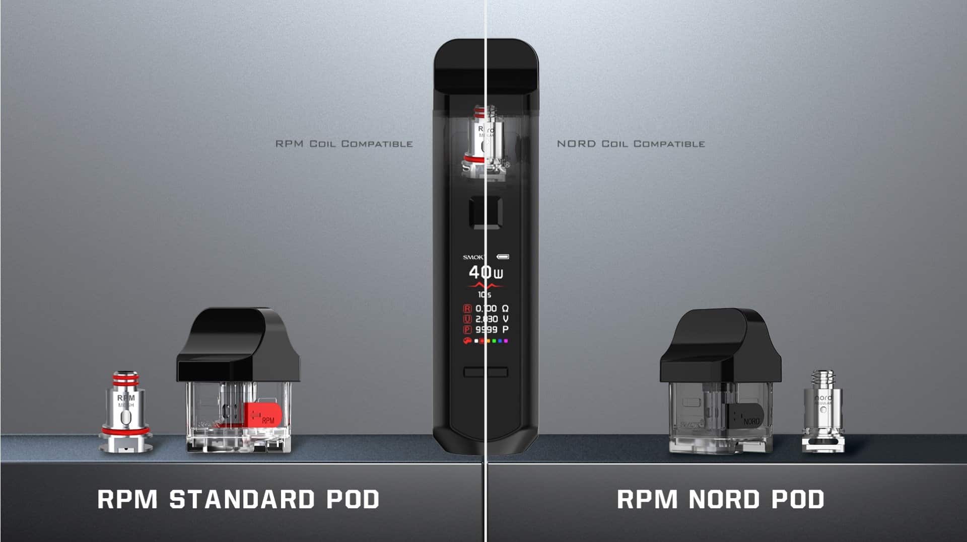 The Smok RPM40 Empty Replacement Pod is made for use with the Smok RPM40 kit only. There are 2 different options to choose from depending on the types of coil you wish to use. If you are looking for a pod to use the standard RPM40 coils then you would need to select the RPM40 Standard Pod option. If you would rather use the Smok Nord Coils then you would need to select the RPM40 Nord Pod option from the drop down box.