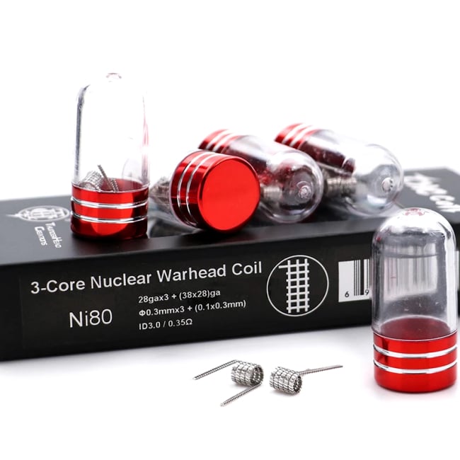 Coil Type | 3 Core Fused Clapton Coil Ni80, 3 Core Nuclear Warhead Coil Ni80, 4 Core Nuclear Warhead Coil Ni80, 6 Core Framed Staple Coil Ni80, Blaze 3 Core Fused Clapton Coil Ni80, Blaze 4 Core Fused Clapton Coil Ni80, Blaze Diagonal Alien Coil Ni80, Blaze Parallel Alien Coil Ni80, MTL Fused Clapton Coil Ni80, Tauren Boro 4 Core Fused Clapton Ni80 |