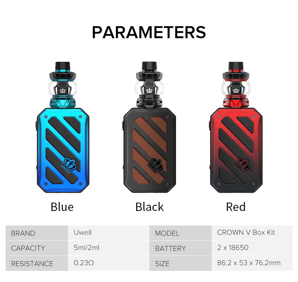 Uwell Crown 5 Kit is born just over 6 months after the release of the best sub ohm tank the CROWN V Tank! It consists of CROWN V Tank and new CROWN V Mod.