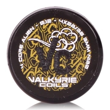 The Valkyrie Coil Set has been specifically designed to work optimally with the 30mm Valkyrie RTA! This set of premium handmade alien coils are perfect for anyone trying to get the most from their favorite RTA! Each Coil Set comes with 2 induvial coils that have a total resistance of 0.12ohms. It is recommend a leg length of 5mm for optimal positioning in the Valkyrie RTA.