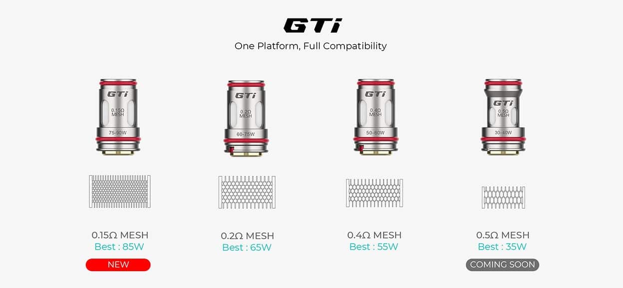 The newly released Vaporesso iTank is compatible with the Vaporesso GTi coils.