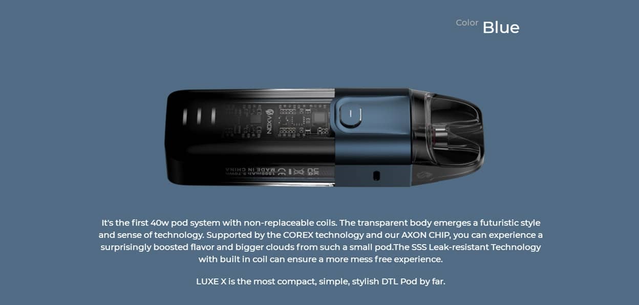 Vaporesso LUXE X Pod Kit is the newest addition to the Vaporesso Family. Bringing elegance, style, cost effectiveness and flavour back to the vaper! The Vaporesso LUXE X Pod Kit with its innovative COREX heating technology, an applied unique Morph-Mesh structure essentially ensures a more rapid and even heating.