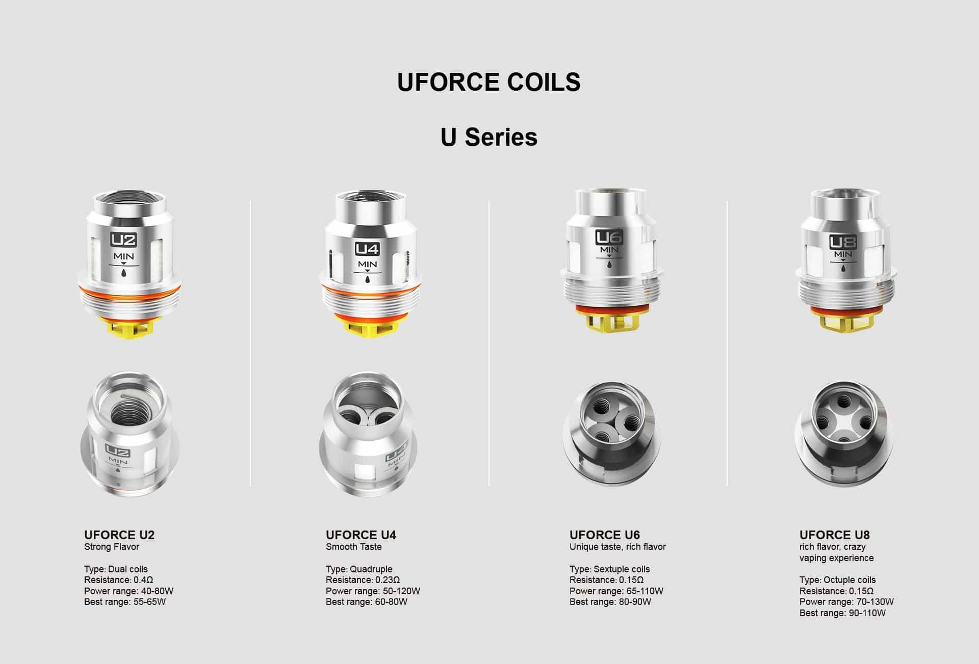 VooPoo UFORCE Coils are the replacement vape coils that have been designed for use with the VooPoo UFORCE vape tank, as well as the Drag 2, Drag Mini and Rex kits.