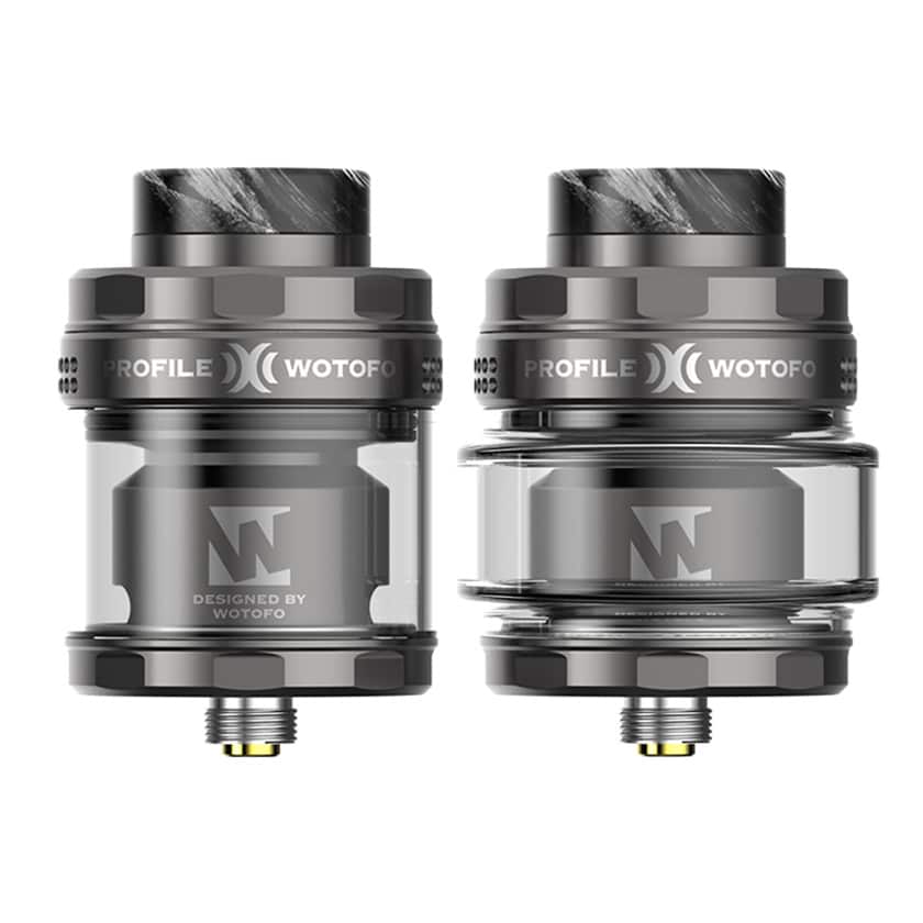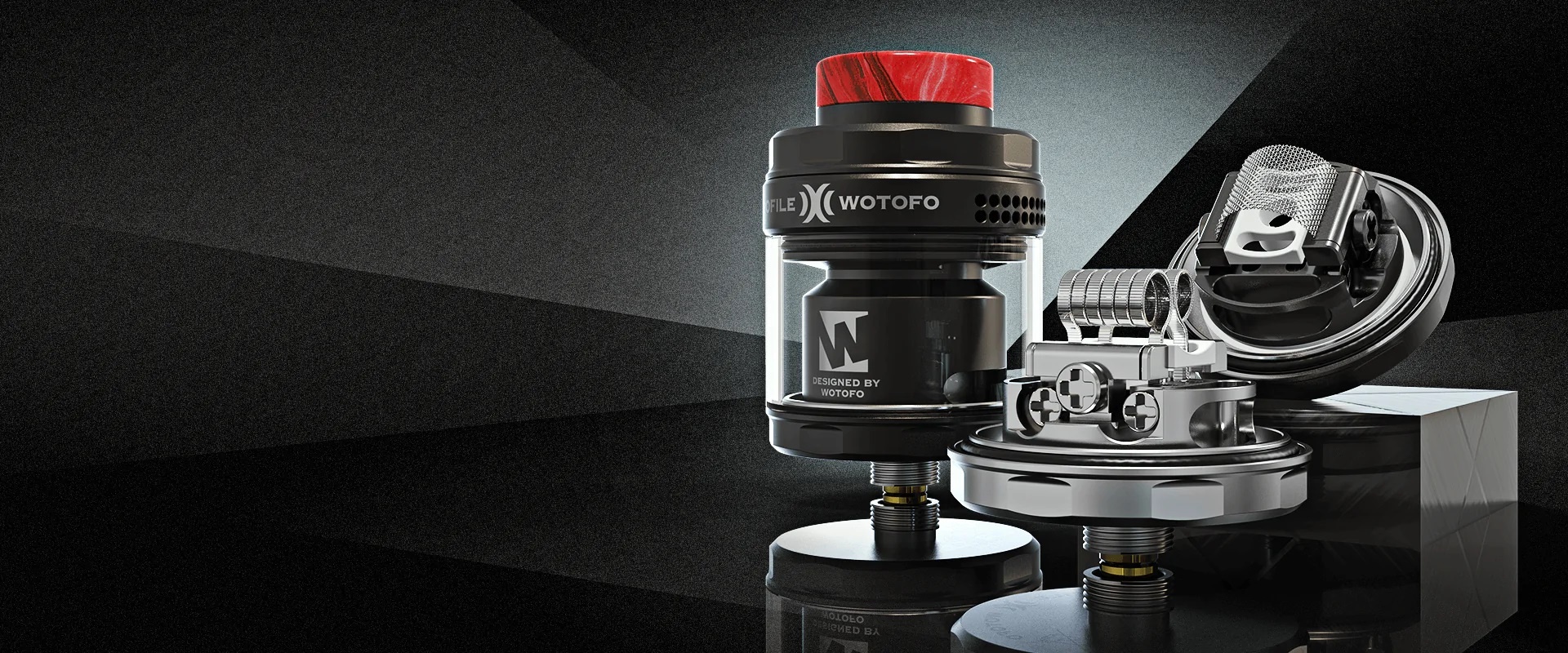 The Wotofo Profile X RTA features a clamp-style build deck, ability to use both mesh coils and dual wire coils, with adjustable top honeycomb airflow. Constructed from durable stainless steel, the Wotofo Profile X RTA offers an impact-resistant chassis while holding a nice bit of e-liquid within the bubble glass tank.