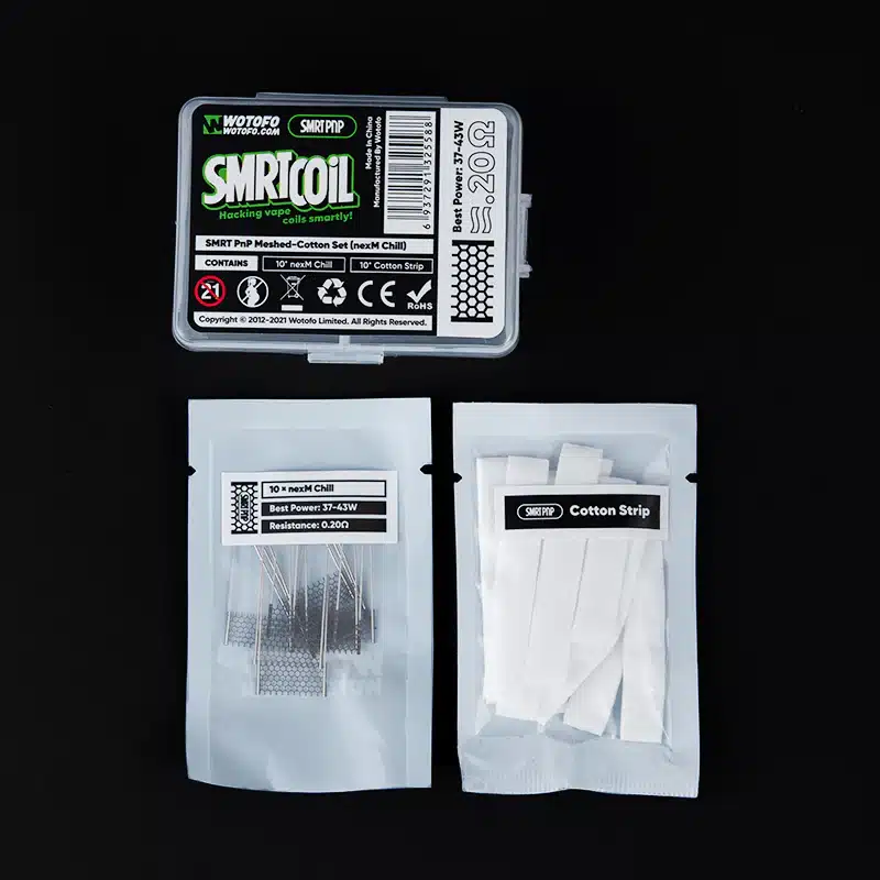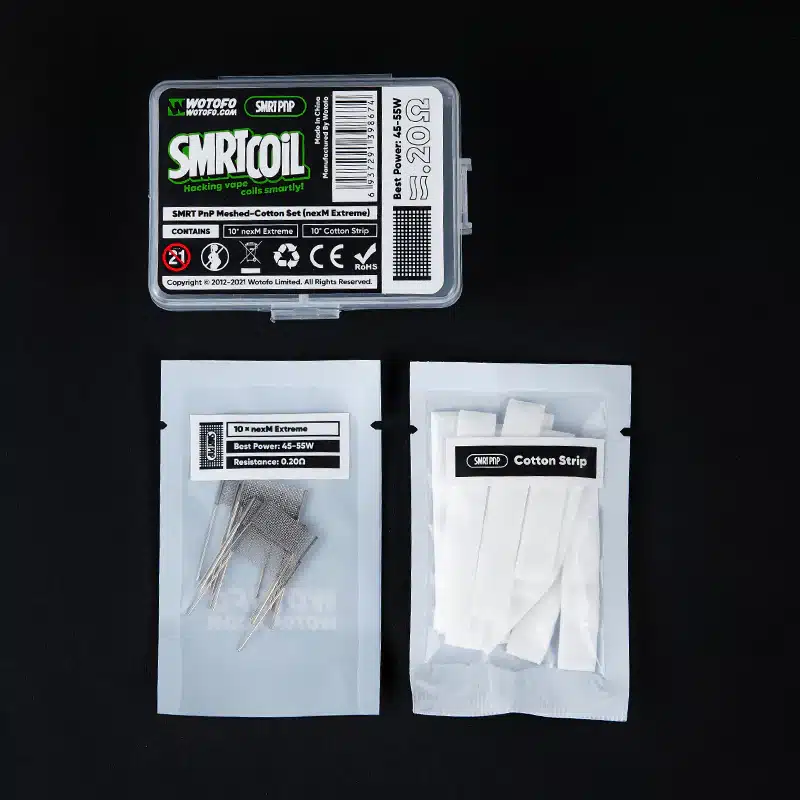Available in three mesh variations — nexMESH Chill, nexMESH Turbo, and nexMESH Extreme — the Wotofo SMRT Rebuildable Coil Kit caters to a wide range of vaping preferences, whether you’re chasing flavour, vapour, or both.