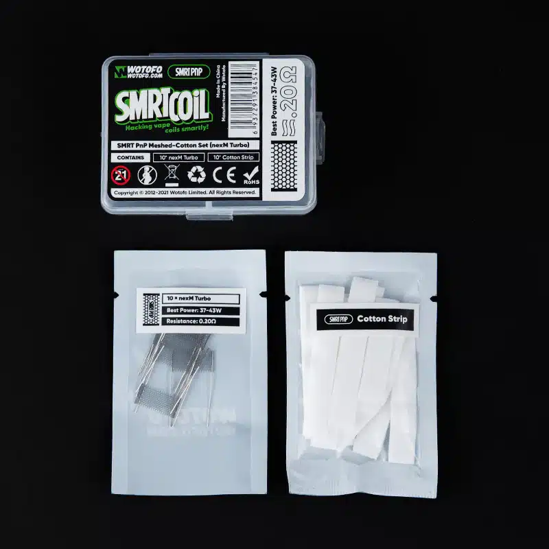 Designed specifically for use with the Wotofo SMRT Pod Kit and other PNP-compatible coil devices, this rebuildable coil kit allows you to craft your perfect vape. Each set includes precision-cut mesh strips and premium cotton strips, enabling vapers to achieve optimal flavour and cloud production without relying on prebuilt coils.