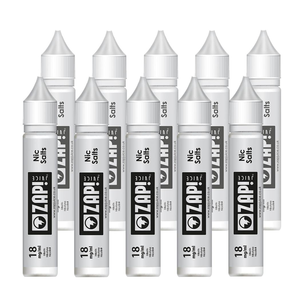 Zap Nic Salt Shot 18mg have been designed to be used with shortfill eliquids, when mixed into your bottle of choice it will increase the nicotine content of your eliquid. For example if added to 50ml of 0mg eliquid you will end up with 60ml of 3mg eliquid. Salt nicotine provides a more potent nicotine hit with less of a throat hit, for a smoother vape.